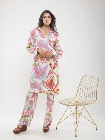 Pantalon fluide imprimé feuillage