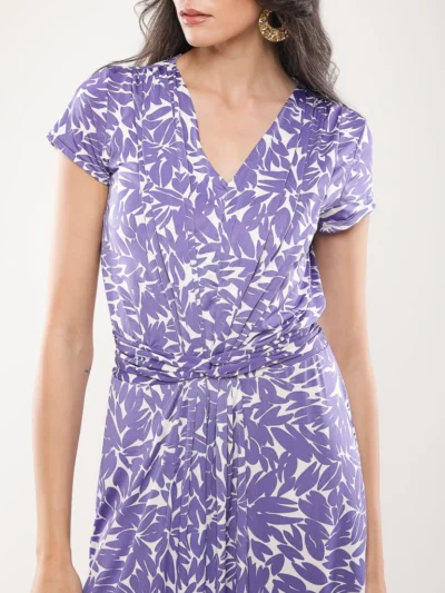 100% coton. Coupe ample et fluide. Longueur midi. Col V, fente avant, broderie délicate sur le bas.